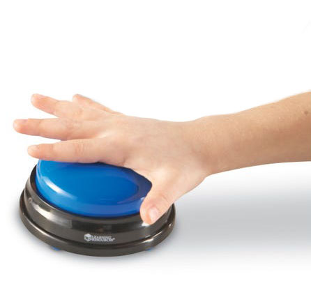 Buzzer de chez Learning Ressources de 9cm de diamètre, piles (2xAAA) non fournies.